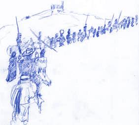 My Dear You . . . Hardest Break-Camp EverThe walkie-talkies soundedat dawn At sunrise forty-five assembled hangovers were told "We ride mid-morning." It was harder to leave Milan than any place we've been Sleepy sleepy Louder and her sleepy sleepy friends cried and held our hands (they don't hug much back here but they hold hands a lot) and we cried, too we said "See you again some time." Right Like that's gonna happen *sniff* Sump'n's UpRegine was curt and tightat the all-company meeting A total change in tone for her. Word is . . . she communicated with her boss in NY overnight She reports directly to the Fund Manager Something must have gone down Because we have a real assignment We're following the White Company South into Florentine territory to confront the Pope's People AwkwarcreepiosityThe awkwarcreepiest momentin the all-company meeting was when two of Skip's gang-banger free lance amigos walked into the courtyard . . . Regine stopped in mid sentence and everybody waited while the low-lifes whispered to Skip and gave him something wrapped in a sweater and slunk off again with their chain mail shirts hissing in that weird chain mail way . . . Regine and Skip are good friends but she was looking daggers at him . . . Scouting ReportAmong the Pope's current contractors are:1) Facino the Dog & Co. (It's soooo weird . . . we were hanging out with those guys less than 24 hours ago and now we're enemies . . . things change so fucking fast back here!) 2) The Witch's Company!!!! I guess Regine will get her duel after all ![]() BedraggledWe packed crappilyand shit kept falling off donkeys all morning On the Bright Sidea) I got totally charged upby being in the city b) Louder & Friends reminded me of all the good things in life c) I'm never going to forget meeting Petrarch d) The Holy Roman church is being discredited in your year (which cheers me up since we're gonna have to face the Pope's viscious Army soon) e) We have rifles and KevlarTM f) We have at least a 3 day supply of real food g) Most important --- I'll be home and with you in two weeks!!!! What I Daydreamed About