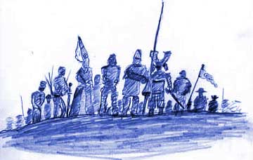 little things . . .. . . like how there are basicallyno buttons, no buckles, no zippers, no velcro so that ![]() you're constantly tying everything you wear like shoelaces and at the end of the day everyone is tired and grumpy and standing around swearing and struggling with all the little knots that seemed so expedient in the morning It's hell with cold fingers And it's amazing how fast the locals can do it like the professional corpse-strippers we saw at work in the battlefield we rode through today little things . . .. . . I'll misswhen I get back to 2002 Like the taste of openfire milletcakes for breakfast cooked on the rusty backplate of a suit of armor served by a friend who is still alive With honey? *kisses fingertips* little things . . .. . . like just how I scrunch up againstmy wooden saddle in the dark and type to you in my chain-mail lap little things . . .. . . of daily lifelike how out of the corner of your eye ![]() you see the same four guys still following you all day ![]() Goal Line StandWe came over the lip of the little valleyand ![]() *kaboomski* The Blue Company saw and smelled its first battlefield The Pope's contractors --- the other team--- had a big meeting here with some Milanese contractors -- our team-- two days ago You could feel the panic sweeping through Blue Company The corporation always told us that almost nobody dies in this era's contractor meetings "it's all for show and ransom" "that's precisely why we picked the year 1368" they said But . . . 48 hours after the meeting there were still unlooted corpses on the field! That's how many dead we were looking at Graice kept going "oh shit, oh shit, oh shit" So Skip, with his exquisite people skills runs out between us and the carnage holds his fist under his chin and booms "Well, Bob, the Pope's Quarterback is only 1 for 7 in the Red Zone this season and you'll notice by the ruts in the mud that when the Milanese Defense got into its Pre-Vent formation they forced the Fightin' Priests to punt and then retreat to the South beyond that line of hills" People laughed and started breathing again But, the fact remains The Pope is not shitting around This was not a Show Battle Speaking of which . . .interesting what you're telling meabout his current holiness's waffling on the current moral dilemma remember it took until 2001 for the church to apologize for the rape of Constantinople a couple hundred years ago I mean 800 years ago 'bout time little things . . .. . . like wet wild flowers![]() on a fallen knight ![]() good doglittle things like . . .. . . the taxidermied wolf skin on the shoulders of the paranoid junkyard corpse looter who somehow thought I had designs on the pile of corpses he was guarding and who jump-shoved his spearhead at my unarmored throat that triggered a reflex for me to make the Wolf Club Gang Sign with my hands and he stopped (It was so surreal I was separated from the pack He would have killed me easily) and he made the Wolf Club Gang Sign back ![]() and smiled and waved me through the battlefield with a brotherly wink Repeat Tracklittle things like . . .. . . how the song stuck in your head is not there by accident Today All day This old 1100s Niedhard von Ruental tune that I learned at Louder's Meie, din liehter schin May-month, your shining light und diu kleinen vogelin and your cute little birds bringent vroueuden wollen schrin are like a box of pleasure daz si willekomen sin! that is so welcome! ich bin an den vroueuden min But I myself am bummed out mit der werlde krank and the whole world hurts Alle tage is min klage, All day I am sad von der ich daz bestte sage that she whom I like so much une ir holdez herze trage and to whom my heart is dedicated daz ich der hight wol behage doesn't like me von den schulden ich verzage I'm especially downhearted daz mire nie gelanc because I've never been a winner ![]() |